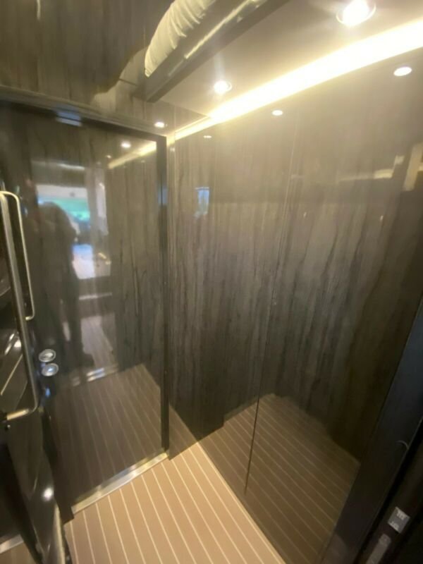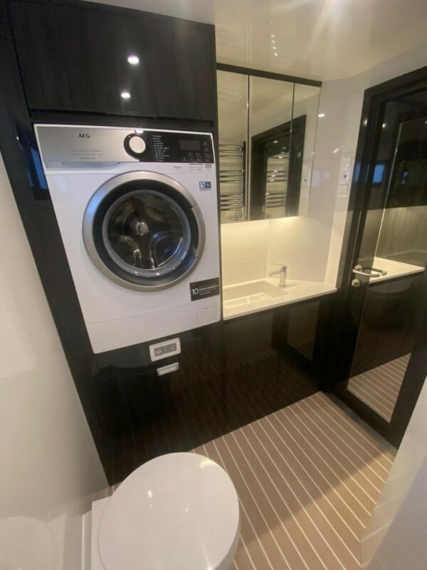 Climatisation parking LG, chauffage eau Kabola avec chauffage au sol, lave-vaisselle, lave-linge, machine à café, 3Tv/Sat, bois précieux, salle de bain, douche, WC, climatisation, cuisine, coin salon en cuir, micro-ondes, réfrigérateur et congélateur, selle externe armoire, treuil, régulateur de vitesse, jantes en alliage, système de navigation, suspension pneumatique, essieu arrière orientable.