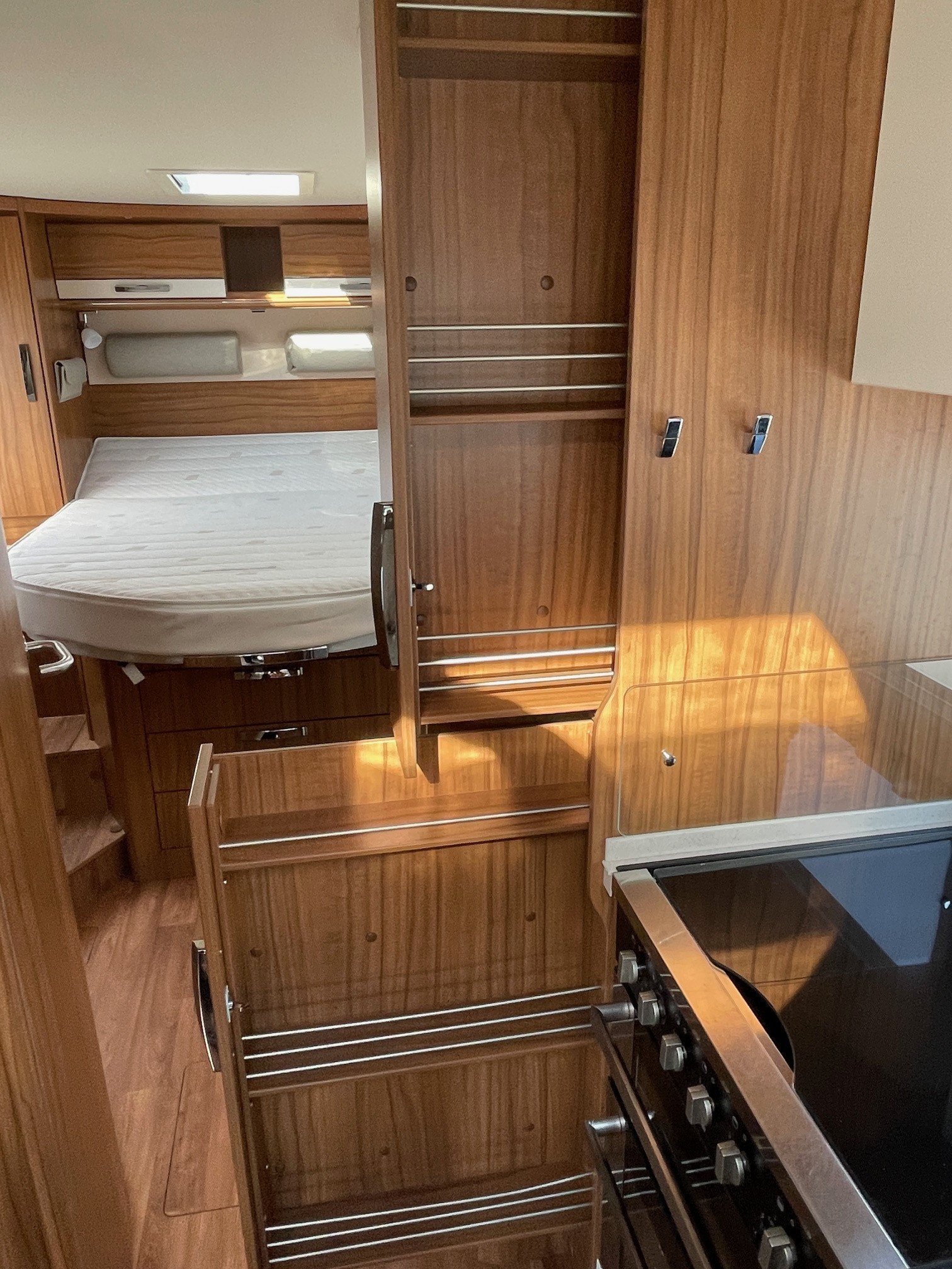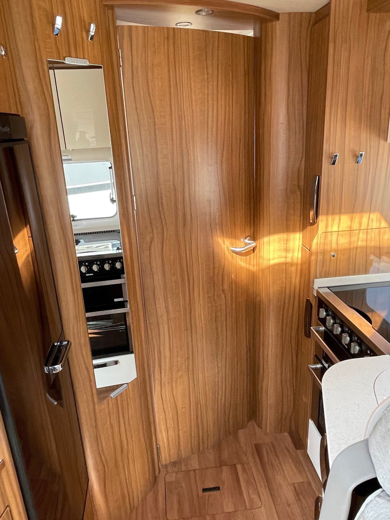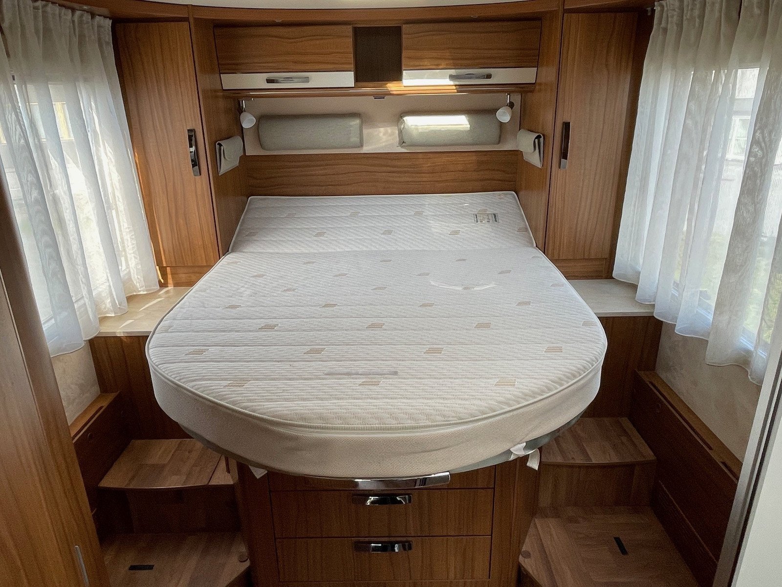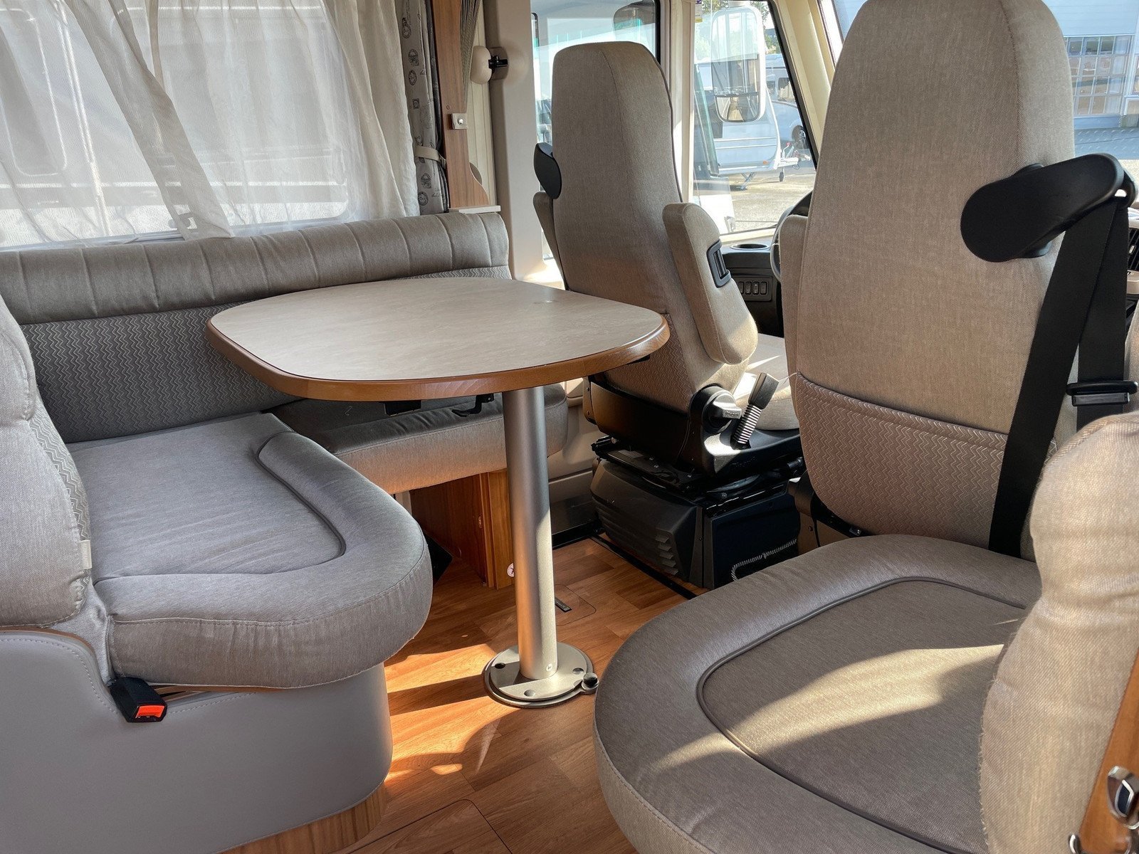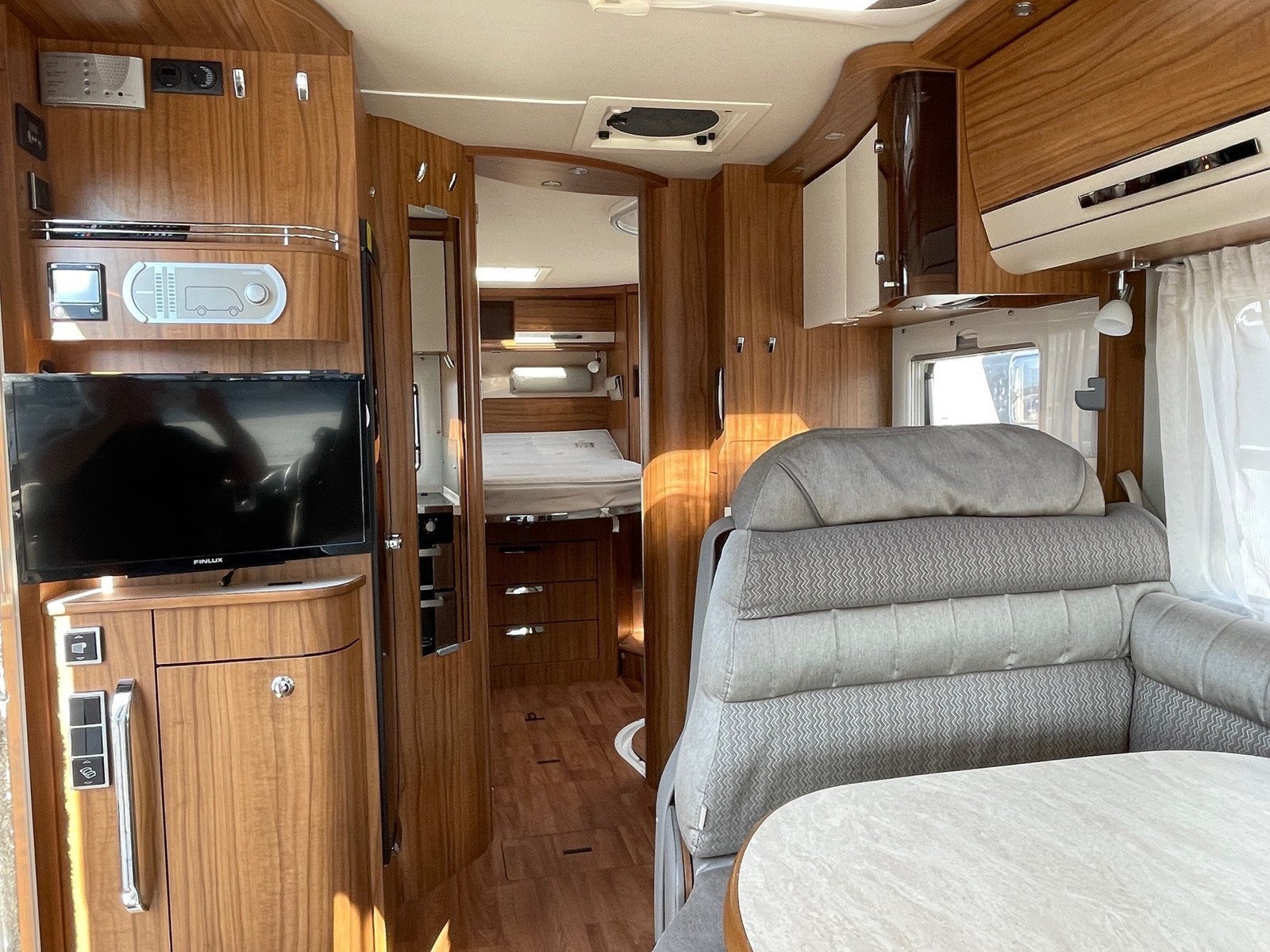 Hymer B708 Premium Line avec moteur 3.0 ! Vous disposez ici d’un mobil-home bien équipé avec un lit queen, grand lit pavillon à l’avant au dessus de l’espace conducteur, porte-vélos sur le mur du fond, auvent, 2 panneaux solaires sur le toit, cuisinière avec 2 fours au gaz, duo -ventilateur de toit, chauffage Alde, antenne parabolique, alarme gaz Nx, navigation et marches électriques pour le conducteur et le salon.