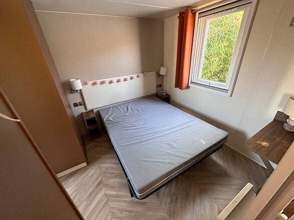 Ce mobil home avec séjour dispose de 3 vraies chambres. La chambre principale est une suite parentale avec accès direct à la salle de bain.