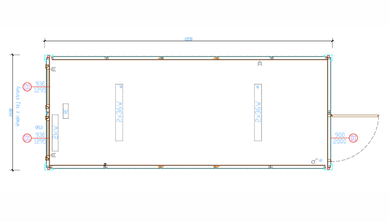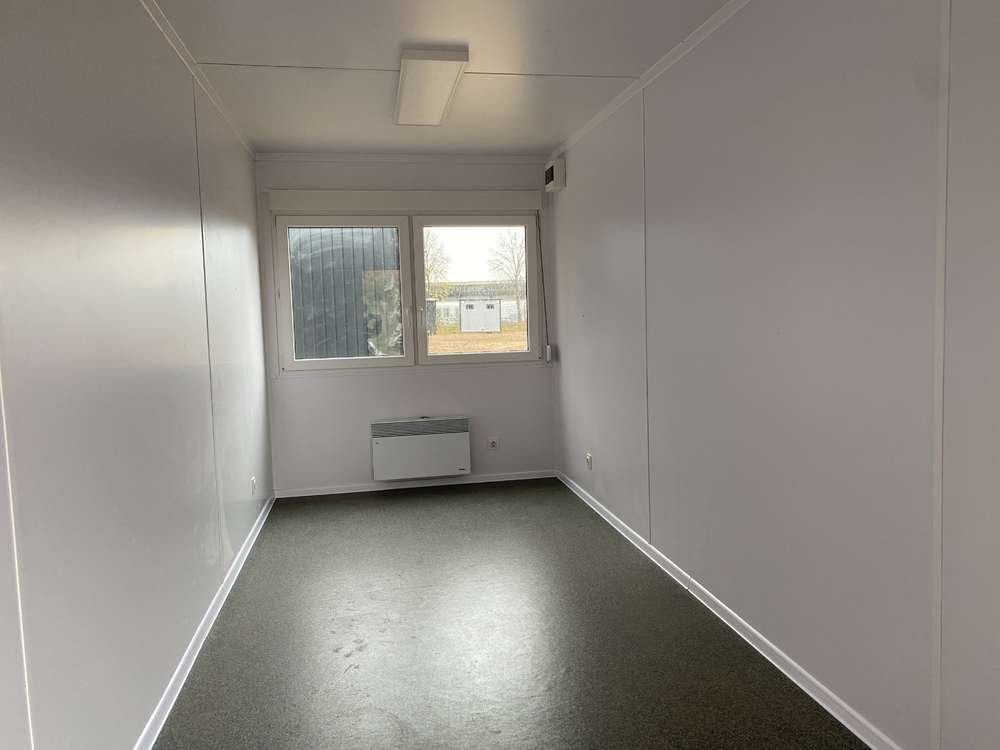 en PVC – entrée 380 V, 32 A, 5 pôles ; 1 coffret fusible et répartiteur, 2 lampes LED, 1 interrupteur, doubles prises 230V, fenêtres et protection solaire – 1 double fenêtre / 200cm x 120cm et volets roulants PVC 1 porte – 200cm x 90cm