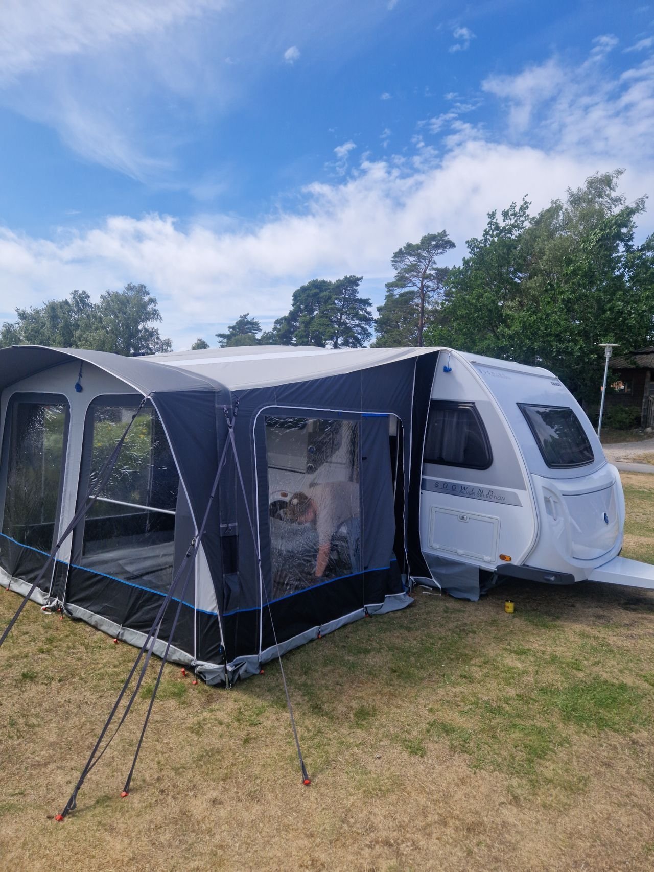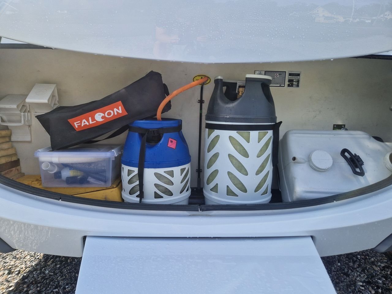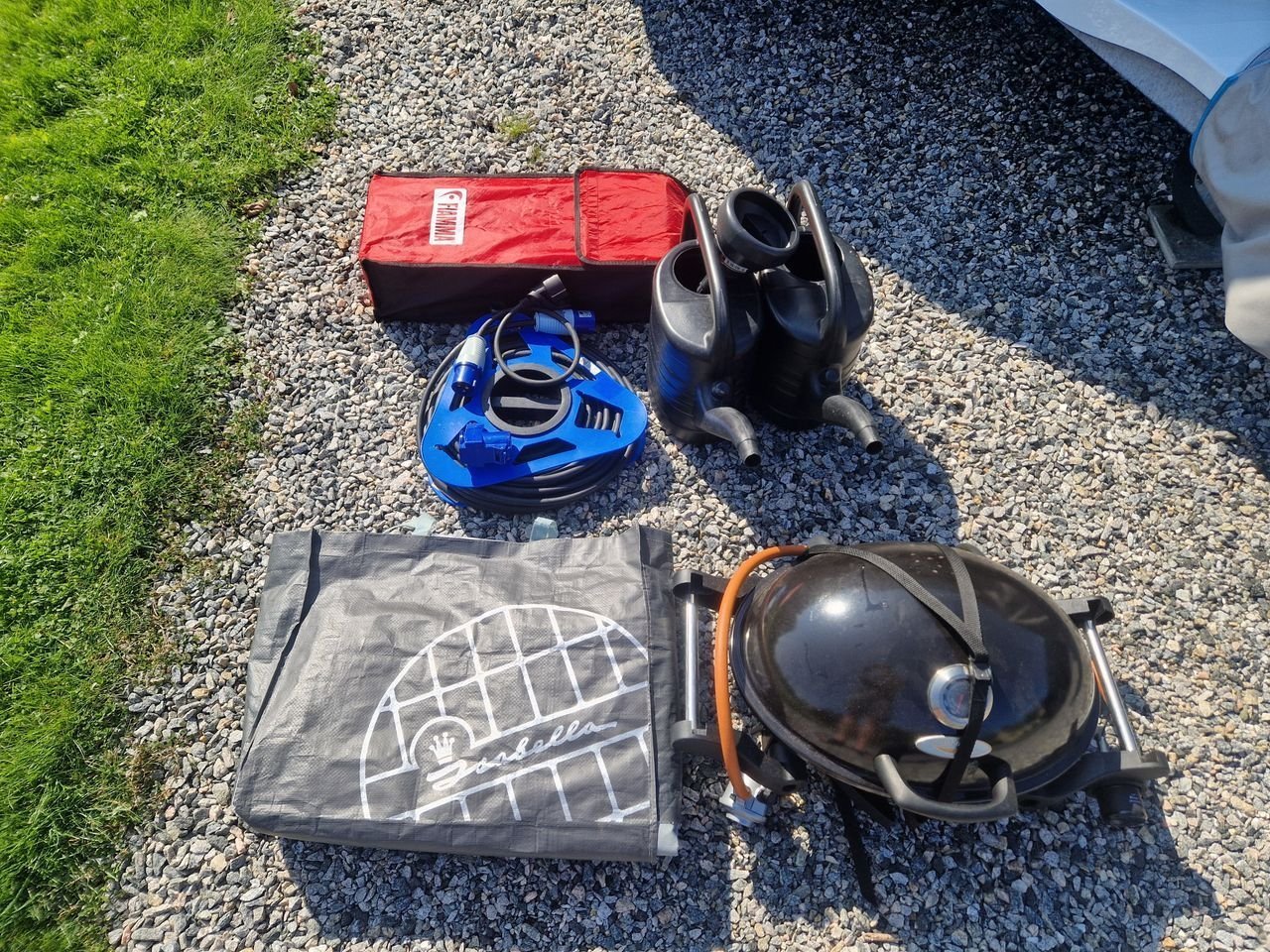 Elle est livrée avec de nombreux équipements. Entre autres, un superbe auvent gonflable Isabella de 3 ans, 2 bouteilles de gaz (11 kg et 5 kg), des rétroviseurs pour la voiture, un barbecue, un séchoir à monter sur la remorque, une table, une télévision avec lecteur DVD intégré, etc.