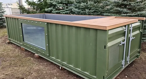 Piscine conteneur Premium est une excellente combinaison de confort, de plaisir et de design unique. Grâce au système de chauffage de l’eau et à l’éclairage intérieur, vous pourrez profiter de la piscine quelle que soit l’heure de la journée. Son confort sera à votre portée même pendant les mois un peu plus froids !