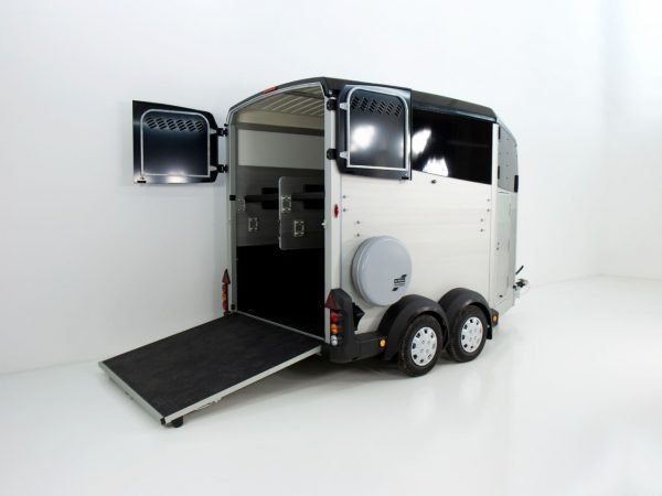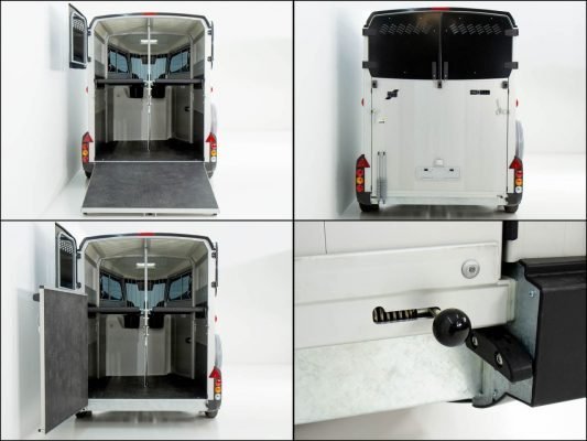 Les remorques pour chevaux Ifor Williams de la série HBX offrent la possibilité d’ouvrir le hayon de manière variable comme rampe ou porte.