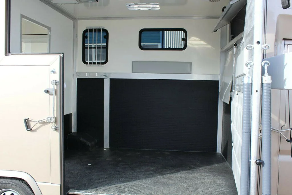 2 fenêtres abattantes, 2 trappes de toit, une fenêtre coulissante horizontale dans la zone des chevaux
