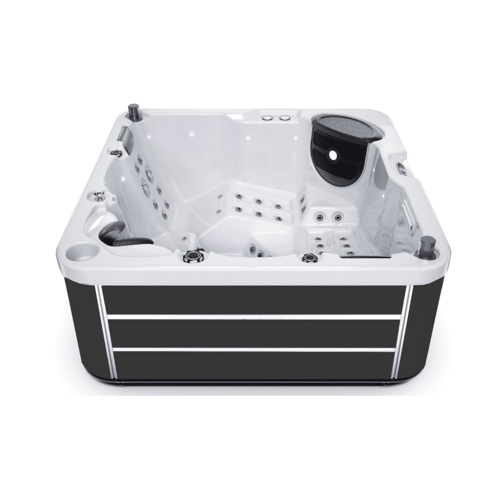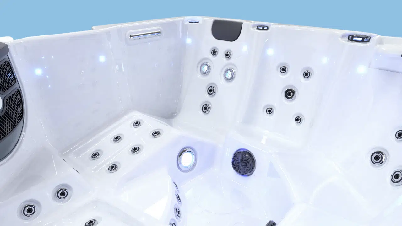 Les 59 jets hydrothérapies, l’aromathérapie intégré et la chromothérapie vous transporteront dans un univers de relaxation ultime. De plus, le système de désinfection par lampe UV PURESAFE garantit une eau toujours pure.