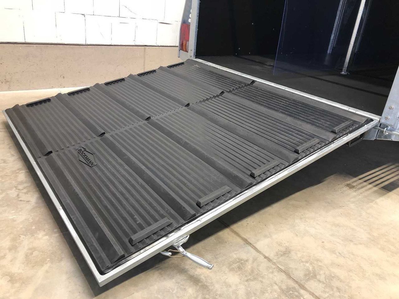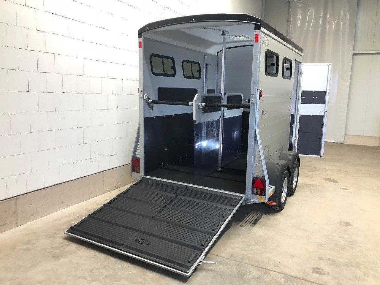 – Caoutchouc sur la porte de chargement avec marchepieds intégrés et arrêts latéraux garantissant une adhérence optimale pour vos chevaux